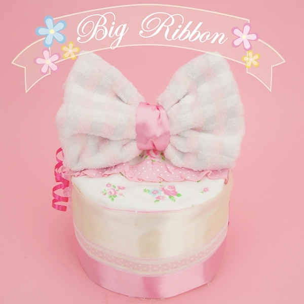 | ★今回、お客様にご購入いただいた商品です♪ ビッグリボン1段おむつケーキ《ピンク》ヽ(*^^*)ノ |