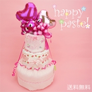 バルーントリプル3段おむつケーキ《ピンク》