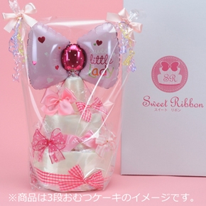 スイートリボンの高級サテンリボンを使ったオリジナルおむつケーキ