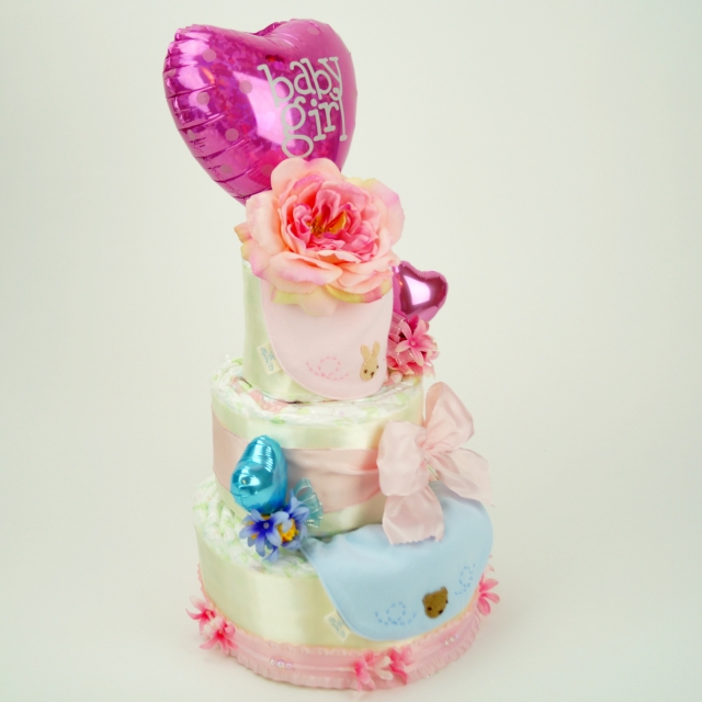双子の女の子と男の子用のおむつケーキです