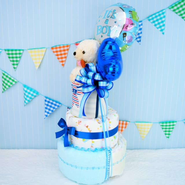 おむつケーキHOME > シーンで選ぶ(出産祝い(0歳児)) > くまさんバルーン3段おむつケーキ《ブルー》【送料無料】